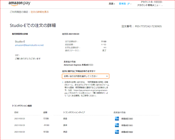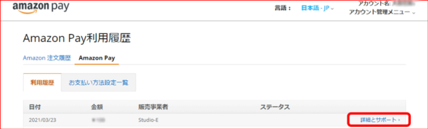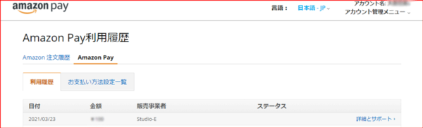 1)Amazon Pay利用履歴にログインします。