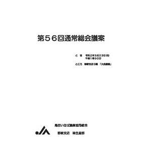 くるみ製本:第56回柿生産部通常総会議案 A4 P22+4 表紙 色上質厚口(コスモス)全黒1色  本文 上質70㎏ 全黒1色