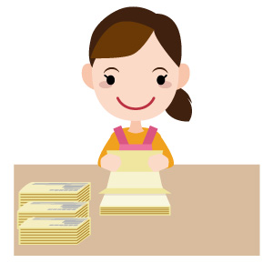作業:A4チラシ 巻き三つ折り作業 巻き三つ折り作業 A4チラシ持ち込み 数量:300部