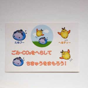 シール:ごみ・CO2をへらし ちきゅうをまもろう! ①100㎜×148㎜ ミラコート_非耐水 1枚四角カット デザインあり 数量:1000部