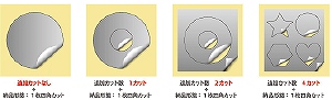 制作したシールのカットパス数をご確認ください。カットパス数シールの形が複雑(41パス以上)の場合、加工オプションにてカットパス数の追加をお願い致します。40パス以内のカットについては標準です。